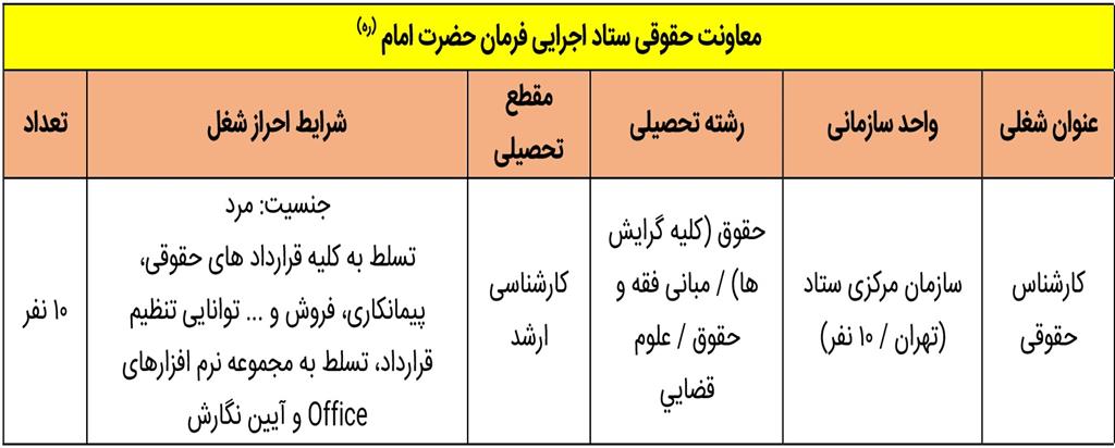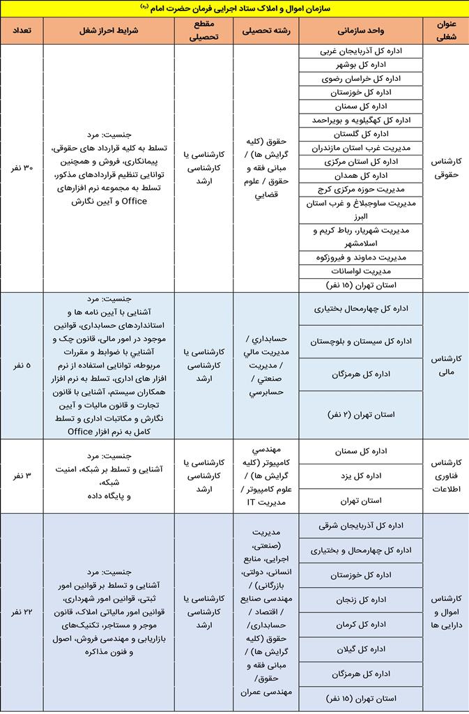 آزمون استخدامی ستاد اجرایی فرمان حضرت امام (ره) به منظور جذب 70 نفر نیروی انسانی مورد نیاز معاونت حقوقی و سازمان اموال و املاک ستاد، صبح پنجشنبه اول آبان ماه 1404 در پنج حوزه امتحانی در شهرهای تهران، مشهد، تبریز، کرمان و اهواز برگزار شد.